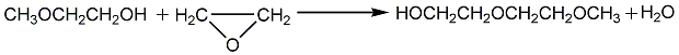 1.本品是乙二醇单甲醚工业生产的副产品。将环氧乙烷与甲醇混合,经预热后加入反应器。反应温度为150~200℃。反应压力为1.96~3.92mpa,甲醇过量约15%。反应产物除主反应生成的乙二醇单甲醚外,还含有副反应生成的二乙二醇甲醚和三乙二醇甲醚,以及过量的甲醇。经醇回收塔和3个真空精馏塔将四个主要组分分离,得到的甲醇循环使用,并得到乙二醇单甲醚、二乙二醇甲醚和三乙二醇甲醚等产品。