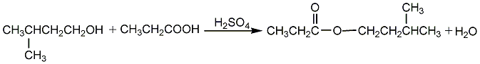 以丙酸和异戊醇为原料,用作催化剂,进行酯化反应而制得。操作示例 丙酸3kg,异戊醇2.3kg,250g,混匀后加热回流8h,冷却后分出下层液,先用水洗二次,再用10%碳酸钠洗一次,后再水洗一次。分出水层用10%碳酸钾干燥,分馏收集159-162℃的馏分为成品。