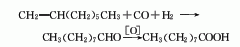 2.以1-辛烯和合成气为原料,经羰基化制得壬醛,然后经空气氧化得到壬酸。实验室制备时可将重蒸过的丙二酸二乙酯加入丁醇钠,加热至80-90℃,加入溴庚烷,使反应物缓缓回流至石蕊呈中性。然后加入氢氧化钾溶液,加热回流4-5h,皂化完成后进行水蒸汽蒸馏,蒸至不再有丁醇馏出。将浓盐酸加入残液中,回流1h后冷却分出油层加热,至180℃当停止放出二氧化碳时,反应物中的油状物即粗品壬酸。减压蒸馏,收集140-142℃(1.6kpa)馏分,得成品壬酸,收率约70%。