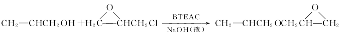 第二种方法是相转移催化法。它是以烯丙醇和环氧氯丙烷为原料,在氢氧化钠溶液和相转移催化剂的作用下反应直接生成烯丙基缩水甘油醚。反应式如下: