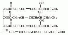 2.蓖麻油酸甲酯法蓖麻油(蓖麻油酸甘油酯)与甲醇进行酯交换后,经高温裂解得十一烯酸甲酯,再经皂化;酸化精制后,得成品,并副产庚醛;甘油等产品。