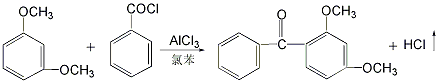 采用间二酚甲基化法。以间二酚为原料,在氢氧化钠催化剂存在下与二甲酯进行甲基化反应,然后经分离油汽、蒸馏,再在三氯化铝、氯存在下与甲酰氯反应,后经水解、蒸馏、冷却、脱色、离心、干燥而得。