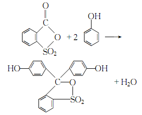 1.将邻磺基甲酸酐与酚共热熔化,加入无水氯化锌于135-140℃反应7h,然后将缩合物倒入热水中,用滤,用水洗涤固体,进一步用酸碱沉淀法提纯而得成品。