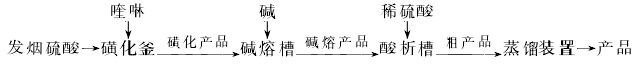③蒸馏过程 将碱熔产品用水蒸气蒸馏,冷却,结晶即为产品8-羟基喹啉。