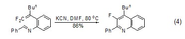 作为催化剂 氰化钾除了可以作为反应物外,还可以作为催化剂,如它可以催化某些反应形成c-c键 (式4)[8]。