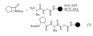 利用氰化钾作为催化剂也可以用于酰胺键的形成,从而使肽链延长(式7)[10]。