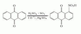 2.蒽醌磺酸盐氨解法 蒽醌与发烟在汞存在下反应,生成蒽醌-1-磺酸,经氨水中和,再置换成钠盐,然后在间硝基磺酸钠催化下氨解生成1-氨基蒽醌,精制后得成品。